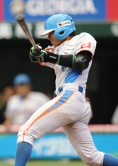 | 4回一死 西口 センターへタイムリーヒット 山口・北ホームイン |