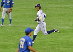 | 1回二死 黒田 レフト前タイムリー 建部ホームイン |