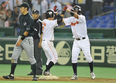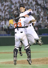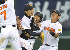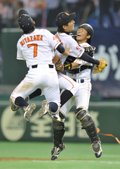 | 9回二死 宮澤 センターへタイムリーヒット 山口ホームイン |
